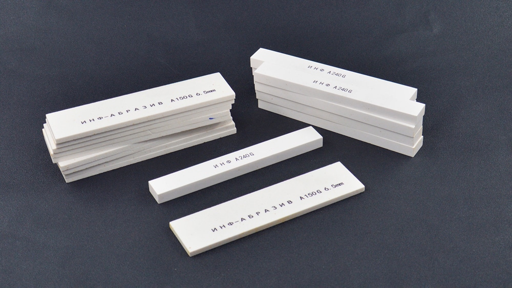 При работе бодрид не вредит алмазным/эльборовым зернам и не выкрашивает их из связки. При этом уверенно обновляет связку на рабочей поверхности.