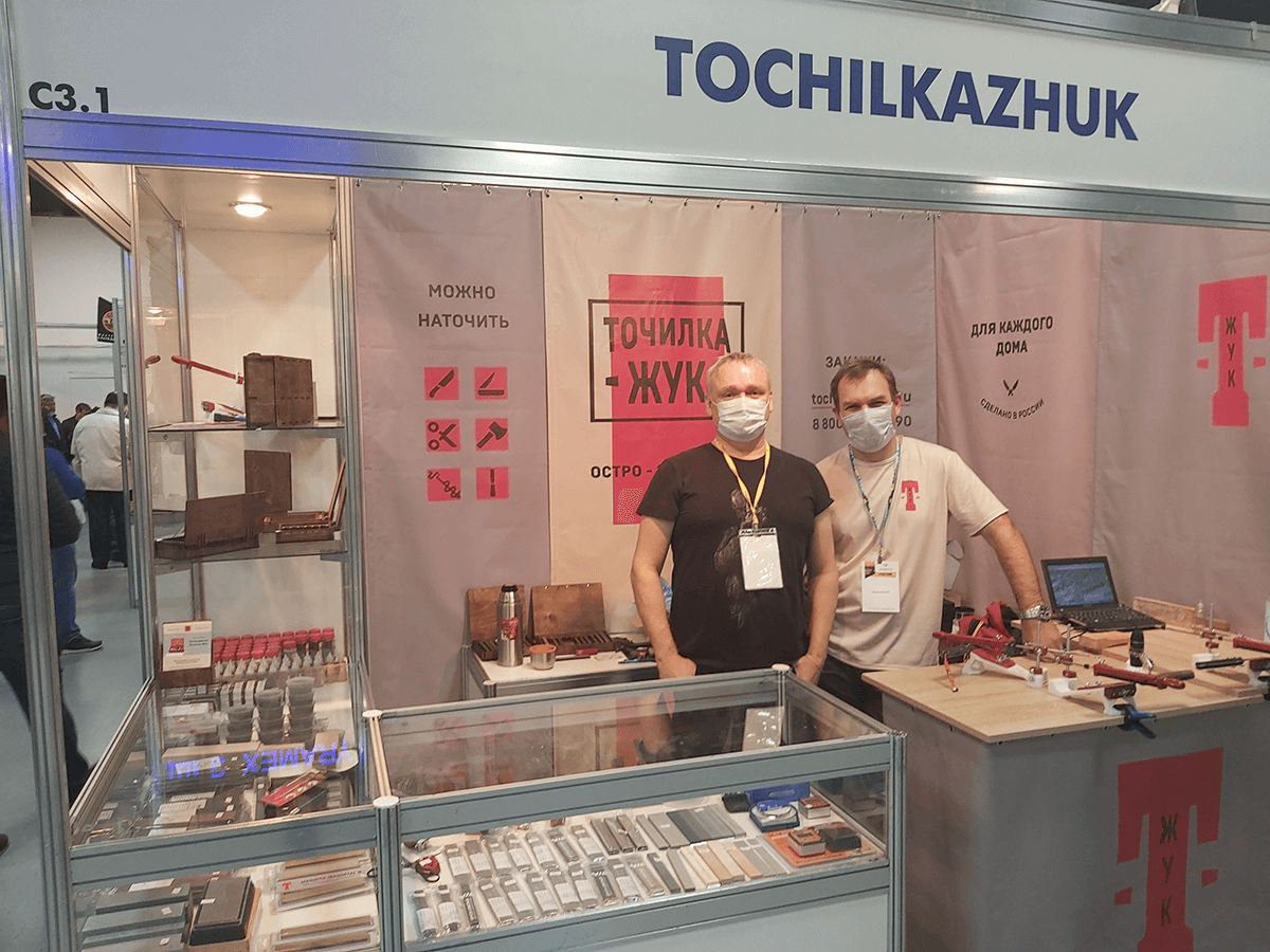 В этом году конечно выставка меньше чем в прошлом. Народ есть, ходит смотрит. А мы так отлично с Игорем и Дамиром пообщались душевно, на все мои вопросы у них были ответы, так еще они рассказали, что готовят для нас владельцев точилки кое что интересное.