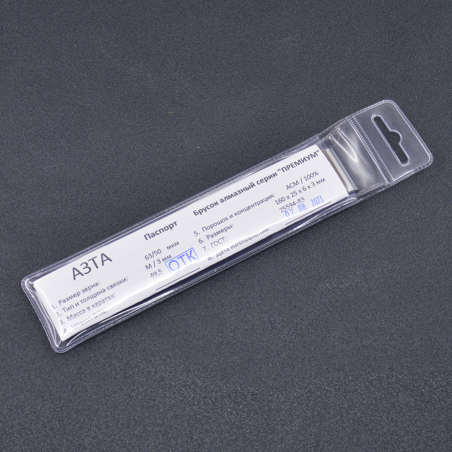 Алмазный брусок 63/50 АЗТА «ПРЕМИУМ» на МО связке 100%, 160х25х6 мм