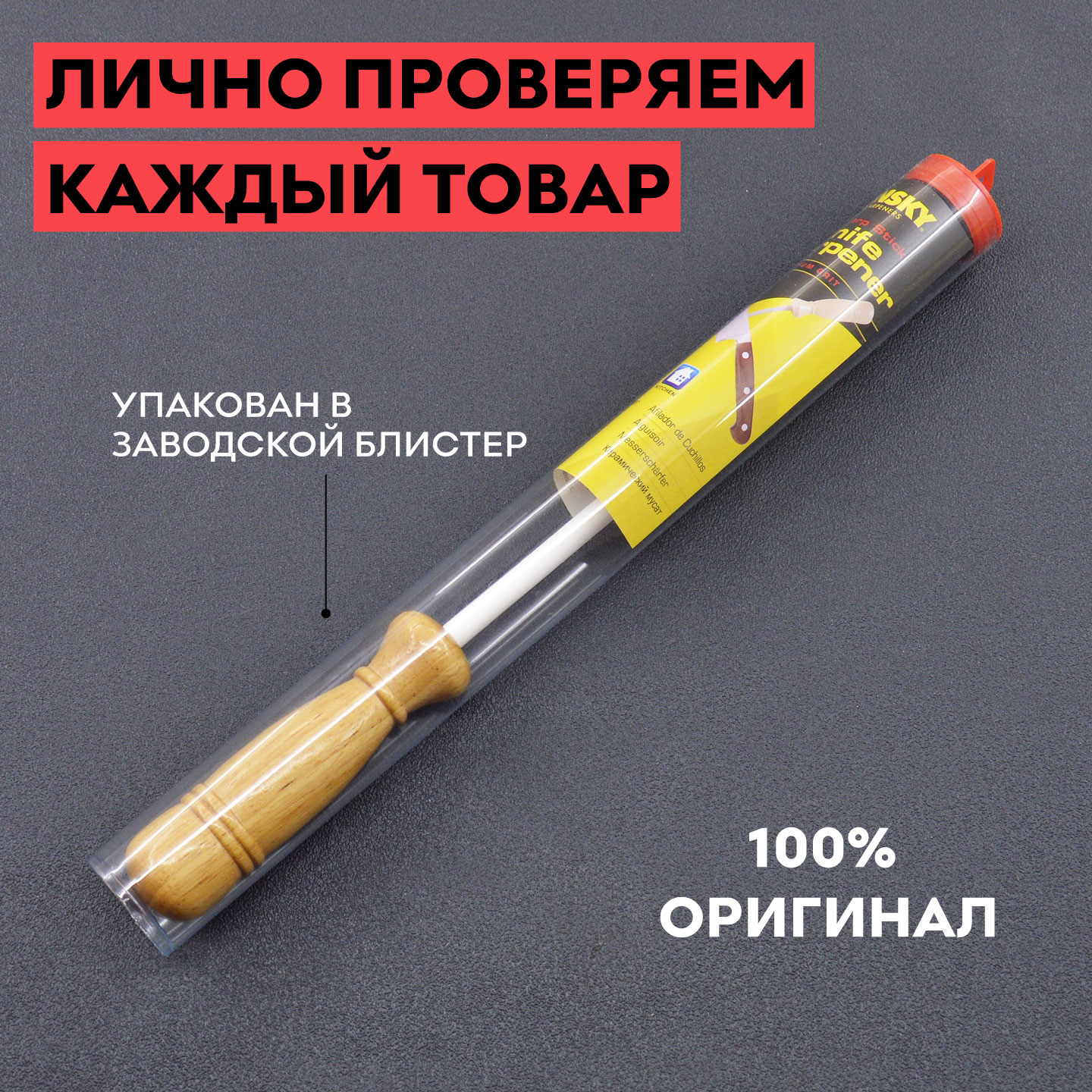 Мусат продается в фирменном тубусе, который может использоваться в качестве чехла для хранения или транспортировки.