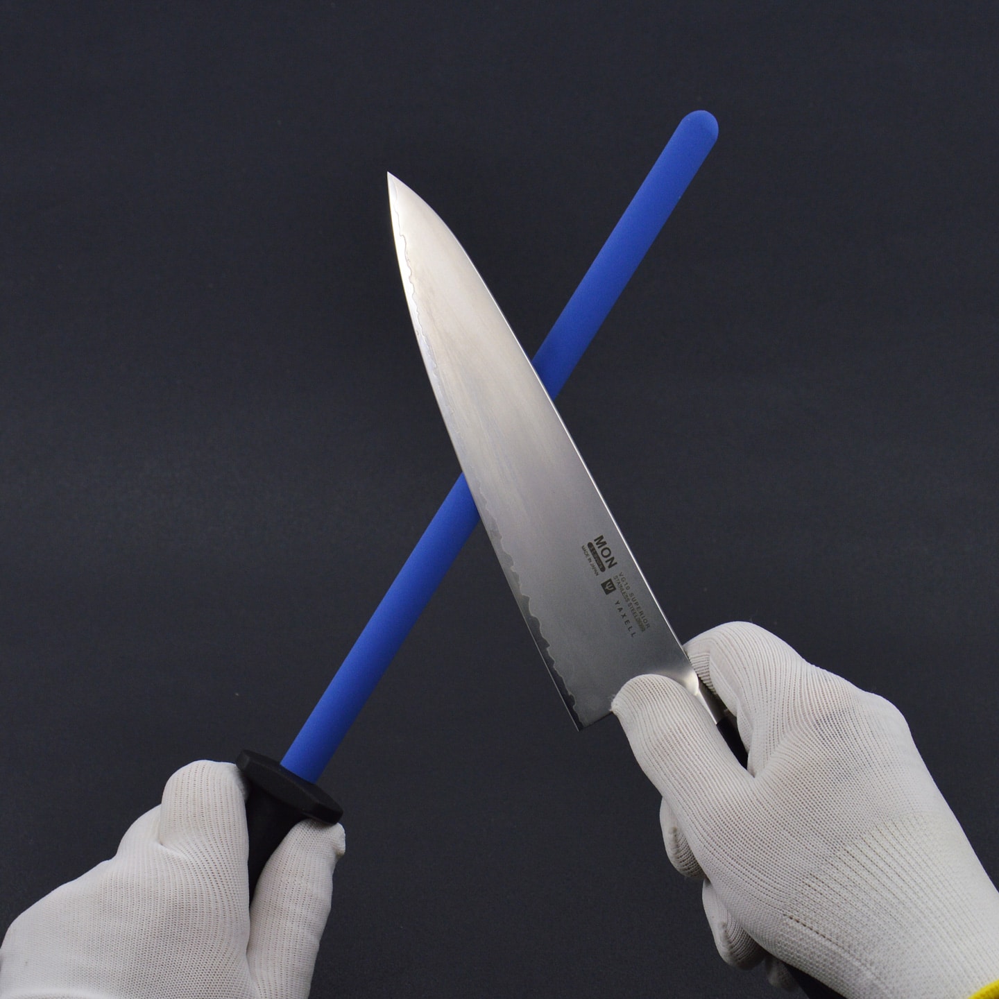 Рукоять имеет кольцо для подвешивания, позволяющее хранить мусат на видном месте.
