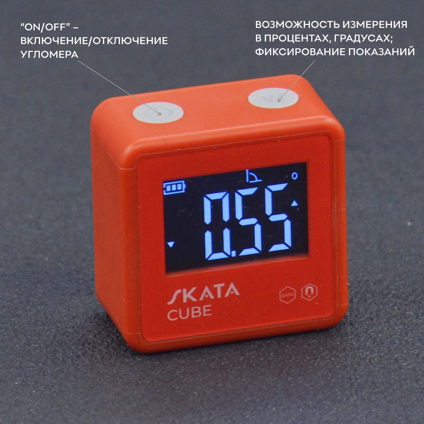 ZERO – переключение режима измерения “относительного” угла. При удержании более 3 сек включается подсветка экрана.